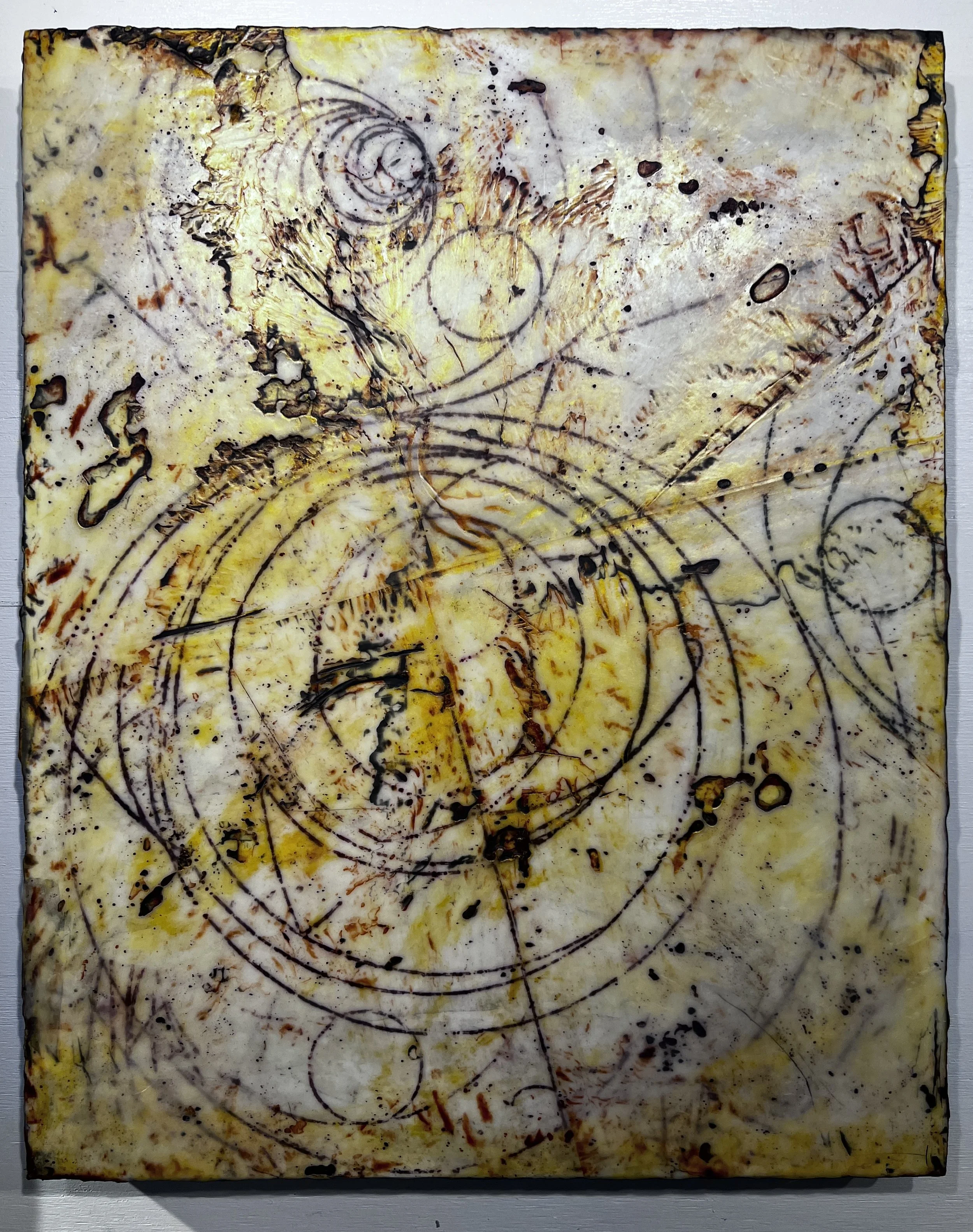 Atom Transit II, encasutic and oil on panel, 30” x 30”, 2014