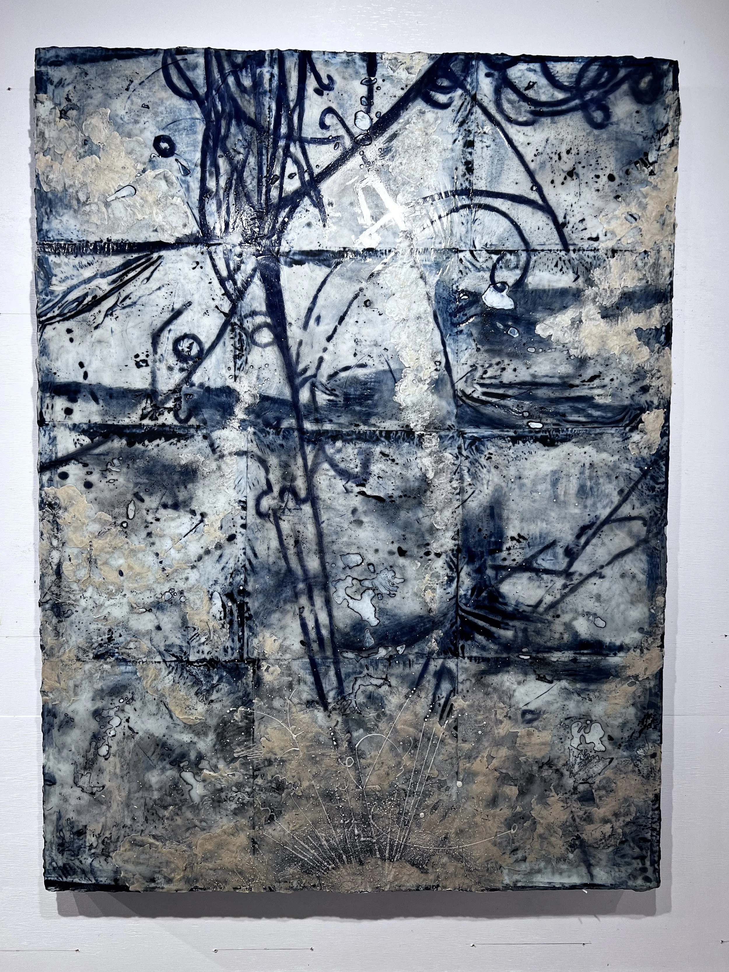 Collage and encaustic work in progress one of four in a collage series.