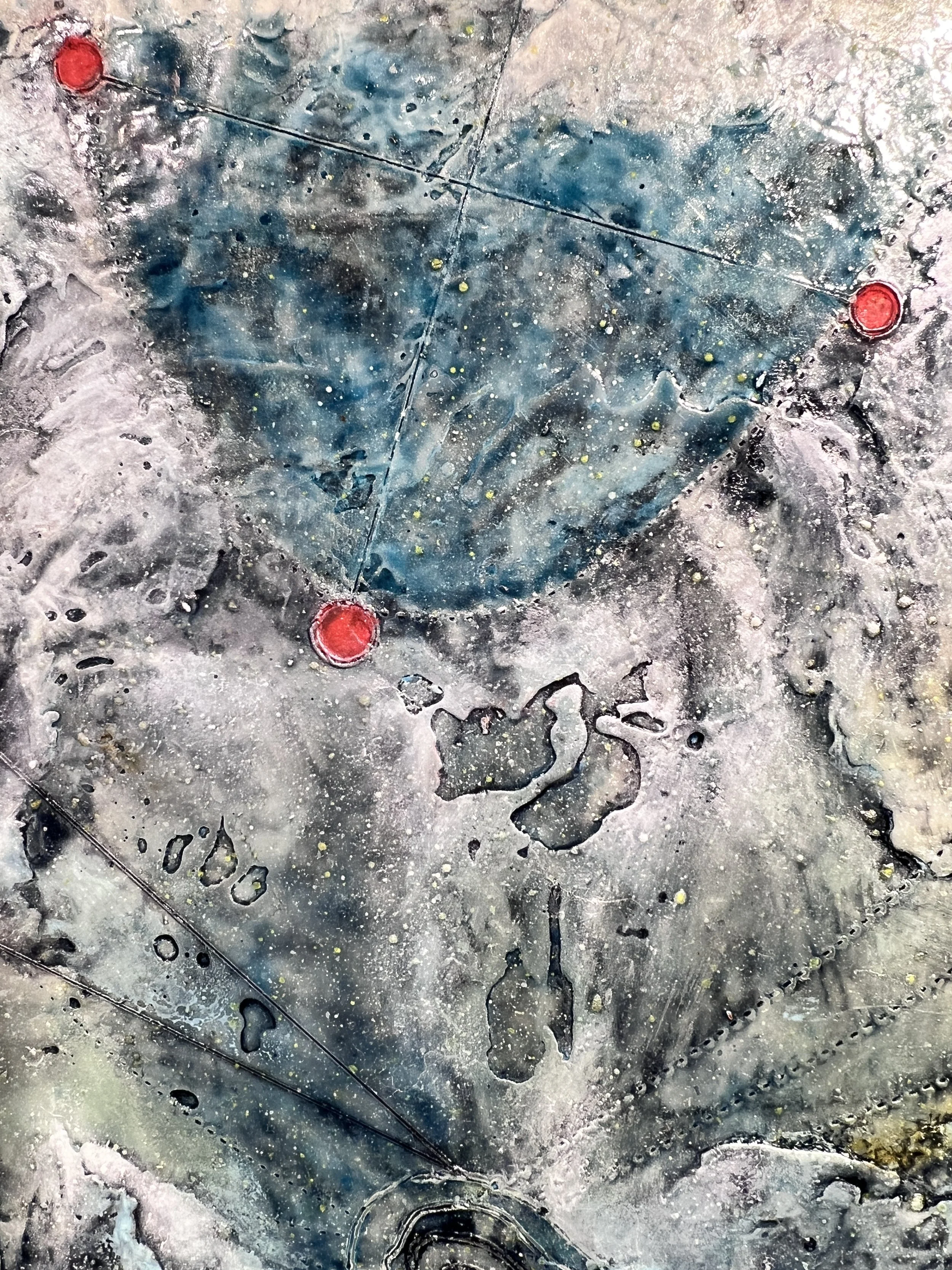As an artist, I am constantly exploring new territories, both within myself and in the external world. The surface or terrains of the wax that the oil paint reveals, have me traveling down various "mindscapes" transporting me in their making to a realm where the tangible and intangible intertwine, and where the beauty of the natural world converges with the vast landscapes that not only reside in my immediate surroundings, but within us all. This exploration of place, whether it be physical, emotional, or conceptual, informs my artistic expression and adds to my work. Life has navigated me here to this moment and this place to do the work and continue making what I want to make. This is what Navigating Place means for me and I hope to see you at my opening!