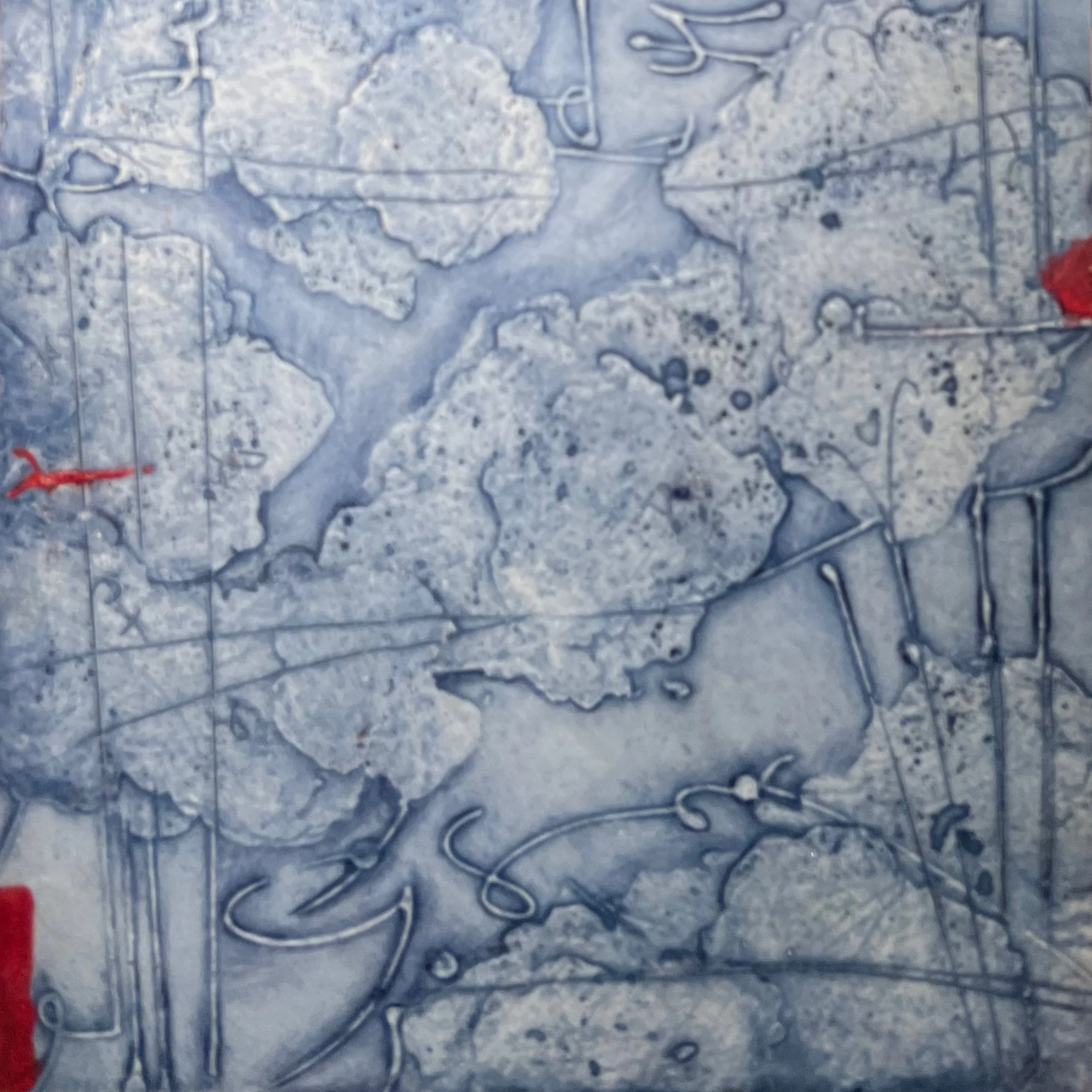 Unfettered is a 6 x 6 inches encaustic and oil painting on panel set in a black wood floater frame.